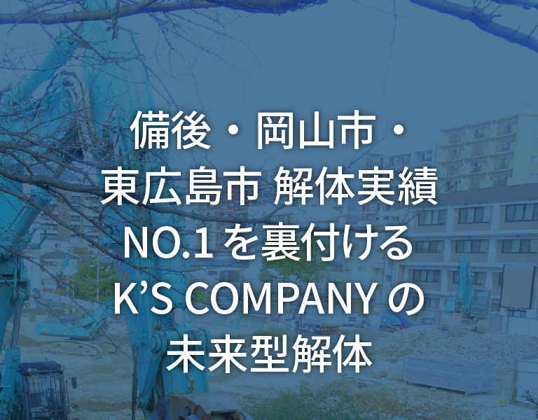 広島県東部を中心に福山市、府中市、尾道市、三原市、また岡山県の笠岡市、井原市、倉敷市、岡山市、香川県などでの解体工事のご相談は、解体工事業者「K'S